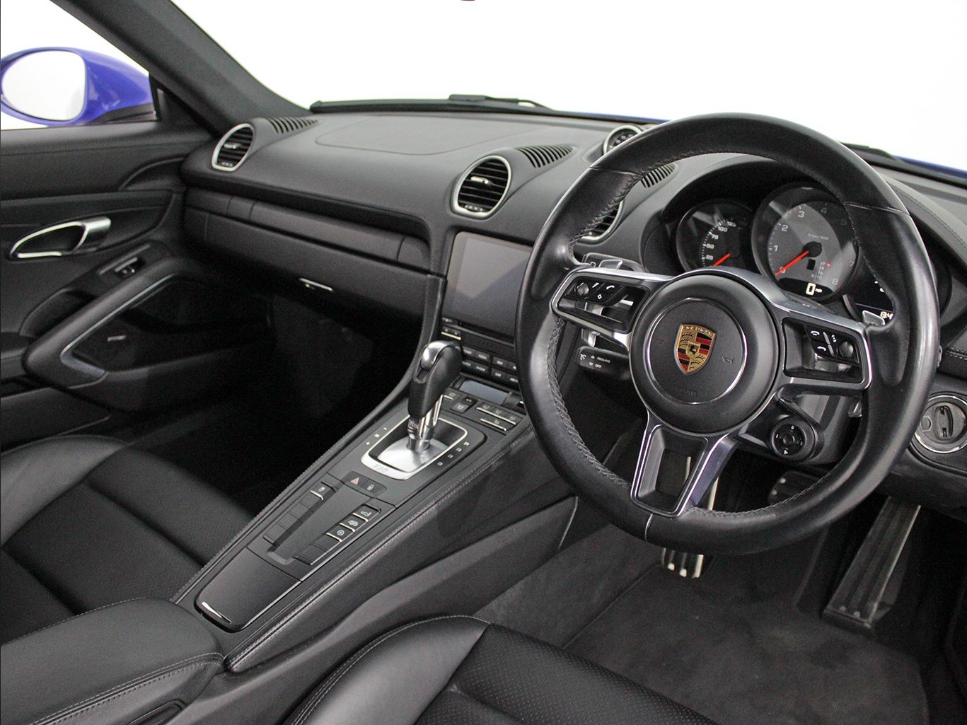 (68 - 2018) 350 bhp Maritime blue with black leather 2.5 litre turbocharged engine 2 wheel drive 7 speed pdk gearbox Air conditioning Porsche Stability Management (PSM) Satellite Navigation (PCM 4) Bluetooth USB Jukebox DAB Apple CarPlay Bose sound upgrade Cruise control Heated steering wheel Multi-function steering wheel Sports seats Heated seats Porsche Sports Exhaust (PSE) Sports chrono Front parking sensors Rear parking sensors Porsche Dynamic Light System (PDLS) 20 inch wheels 24,000 miles Car Reference - RVA -
