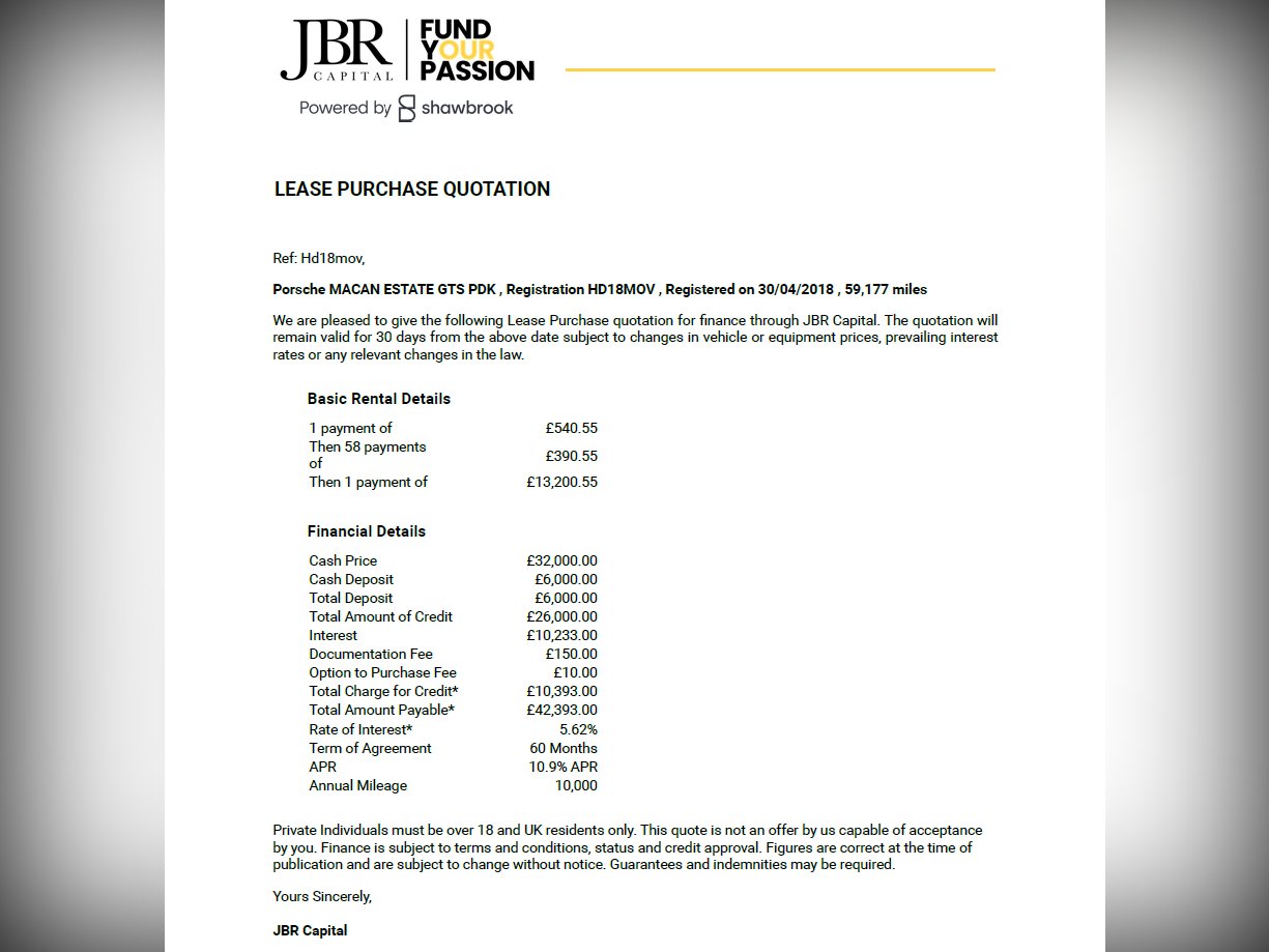 (18 - 2018) 360 bhp Pearl white with black leather / alcantara 3.0 litre "GTS" model 4 wheel drive 7 speed pdk gearbox Climate control Porsche Stability Management (PSM) Active Suspension (PASM) Satellite Navigation (PCM 4) Bluetooth DAB Jukebox Sound plus Apple Carplay Cruise control Multi function steering wheel Sports adaptive memory seats Heated seats Lumbar support Panoramic roof Power tailgate Front and rear parking sensors Electric folding mirrors Porsche Sports Exhaust (PSE) Porsche Dynamic Light System (PDLS) 21 inch wheels 59,000 miles FULL SERVICE HISTORY Lease Purchase Quotation Example: Deposit - £6,000 5 Years @ £391 per month Final Balloon Payment - £12,800 APR 10.9% Please click on the Finance button below for alternative deposit / lengths of term and HP quotations. -